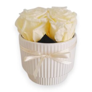 Jarrón Chico Blanco 4 Rosas con Tallo