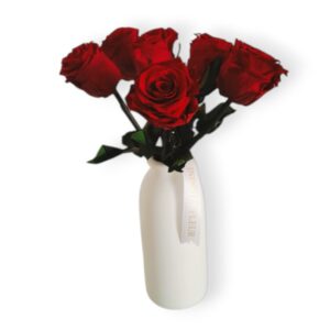 Jarrón Chico Blanco 6 Rosas en Tallo