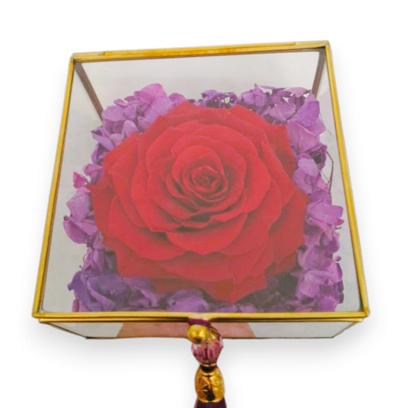 Descubra la esencia del lujo con nuestra Caja de Cristal hecha por artesanos mexicanos. Nuestro Jardín de Hortensias y 1 Rosa Queen, creada a mano con rosas naturales inspirada en la belleza única de una reina, y cuidadosamente resguardada en su elegante alhajero de cristal, es una manifestación de la delicadeza más exquisita y un encanto que desafía el tiempo, convirtiéndose en un clásico instantáneo que nunca deja de impresionar. Este detalle tan sofisticado como versátil es, sin duda, la elección predilecta para conmemorar cualquier ocasión verdaderamente significativa.